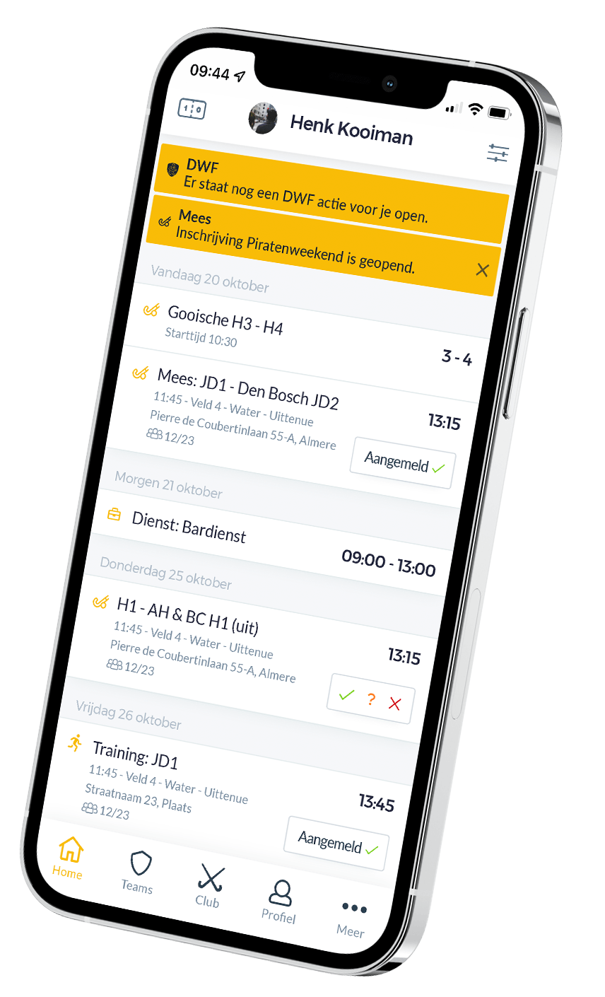 ✔ Na de wedstrijd: voer de uitslag en eventuele kaarten in.